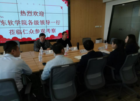 在交流中,刘兆宏主任介绍了成都东软学院整体的专业布局,及信管系相关专业情况,仁众管理公司相关领导也介绍了企业的业务情况,专业需求,岗位需求,双方探讨了未来公司与学校进行校企合作的各种方式和设想。