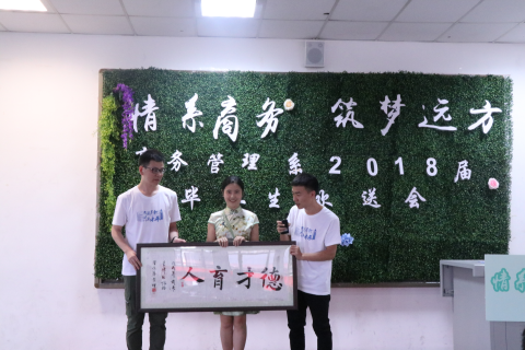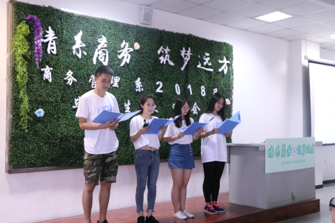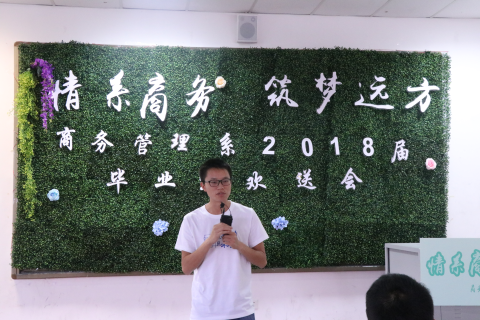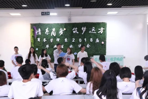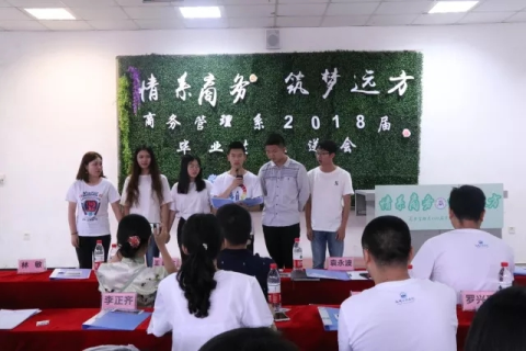 告别母校锐意进取,成都东软学院商务管理系于6月19日下午14点在A3-204教室隆重举办了商务管理系2018届毕业生欢送会,莅临本场欢送会的嘉宾有商务管理系主任王新庄老师、党总支书记沈洪科老师、副主任林敏老师、副主任宋艳老师、商务管理系分团委书记徐琦老师、素质教师袁永波老师、邹鹤峰老师等以及2018届商务管理系各班毕业生代表。