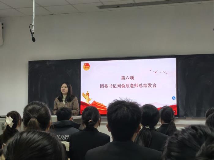 最后,由团委书记刘俞辰老师总结发言。刘俞辰老师充分肯定院团委本学期的工作成效,并对各位干事的认真投入表示感谢。她指出,各部门应将汇报视为一次自我审视、持续提升的机会,并鼓励大家继续将个人成长融入学校与国家发展大局,在实践中锻炼能力,在奉献中实现价值。她强调,新的征程已经开启,院团委必须持续发挥政治引领和思想引导的关键作用,将个人成长的涓流融入到学校和国家的江河之中。