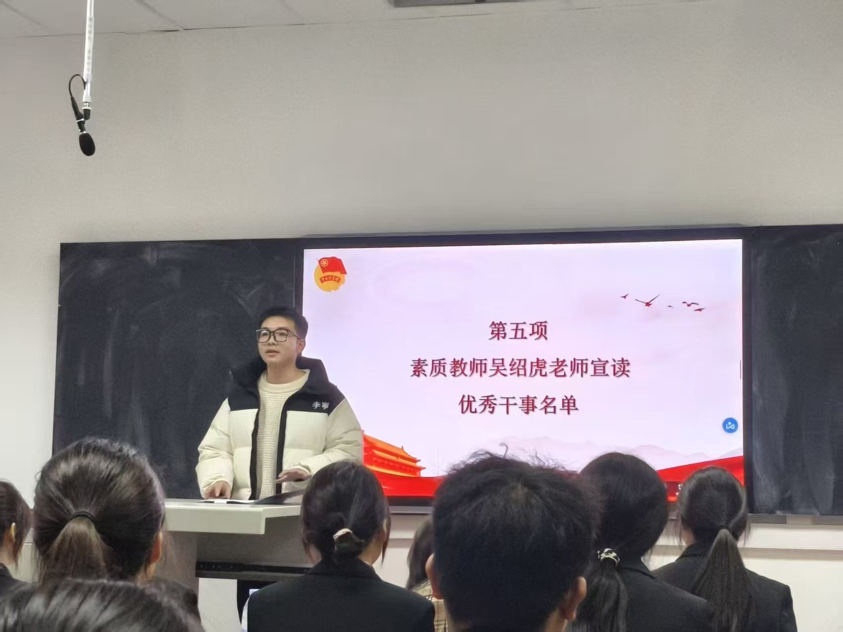 随后,大会进入表彰环节。素质教师吴绍虎老师宣读2025年下半年优秀干事名单,对受表彰同学表示祝贺及给予鼓励,并激励全体同学应向先进学习,在服务同学与自我锻炼中成长,共同营造积极向上的工作氛围。