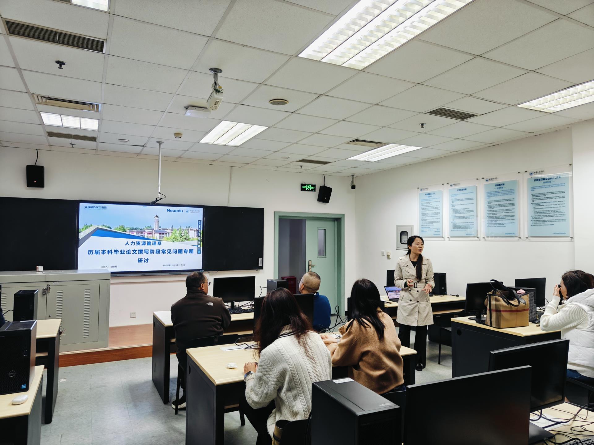 为进一步强化教学过程质量管理,全面提升本科毕业设计(论文)水平,把好人才培养的“出口关”,人力资源管理系于近日在B6-102教室成功召开了2025届毕业设计(论文)总结暨2026届毕业论文评审会。本次会议由系副主任胡秋菊老师主讲,全系教师齐聚一堂,共同参与了此次富有成效的研讨。