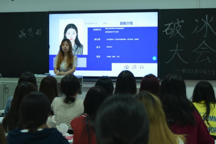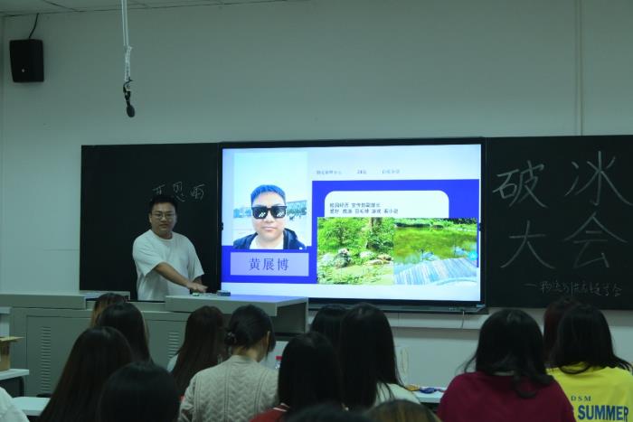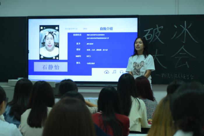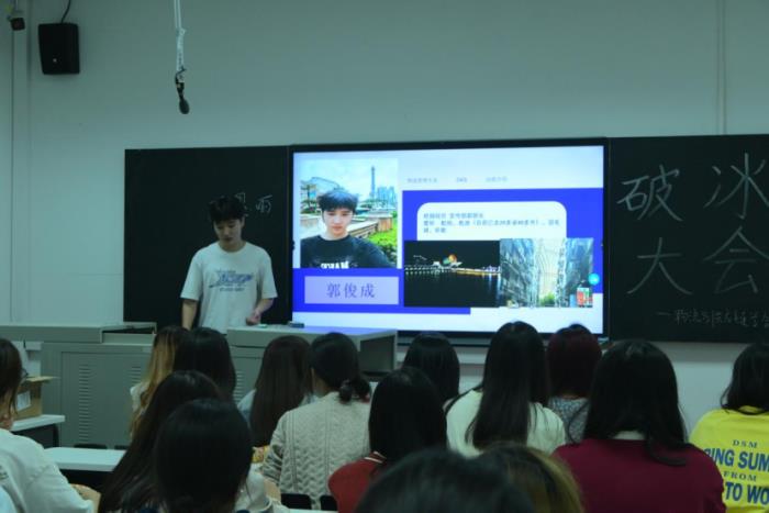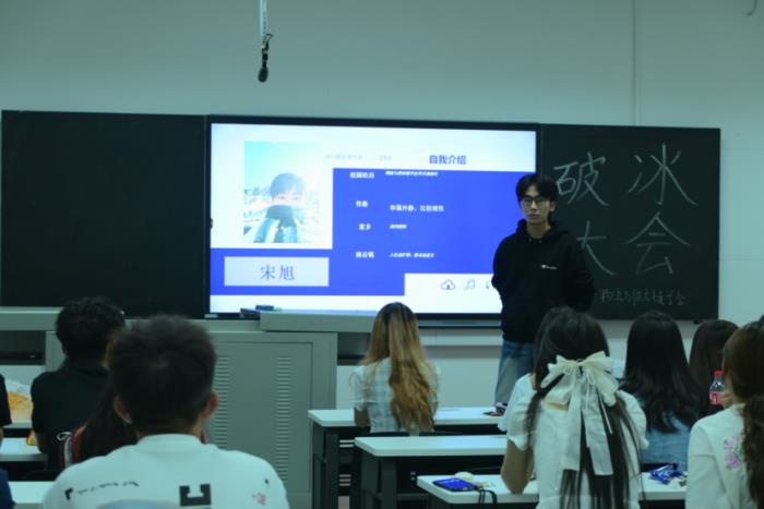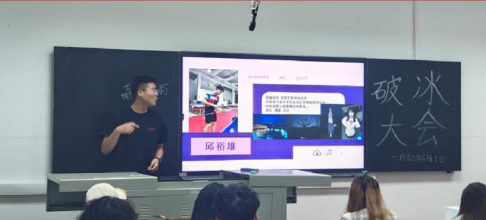 各部门介绍完毕,会长江婷邀请了一位特别的嘉宾——来自大四的优秀学长朱宁,由他为参与本次活动的同学们分享了自己在大学的学习生活经历。
